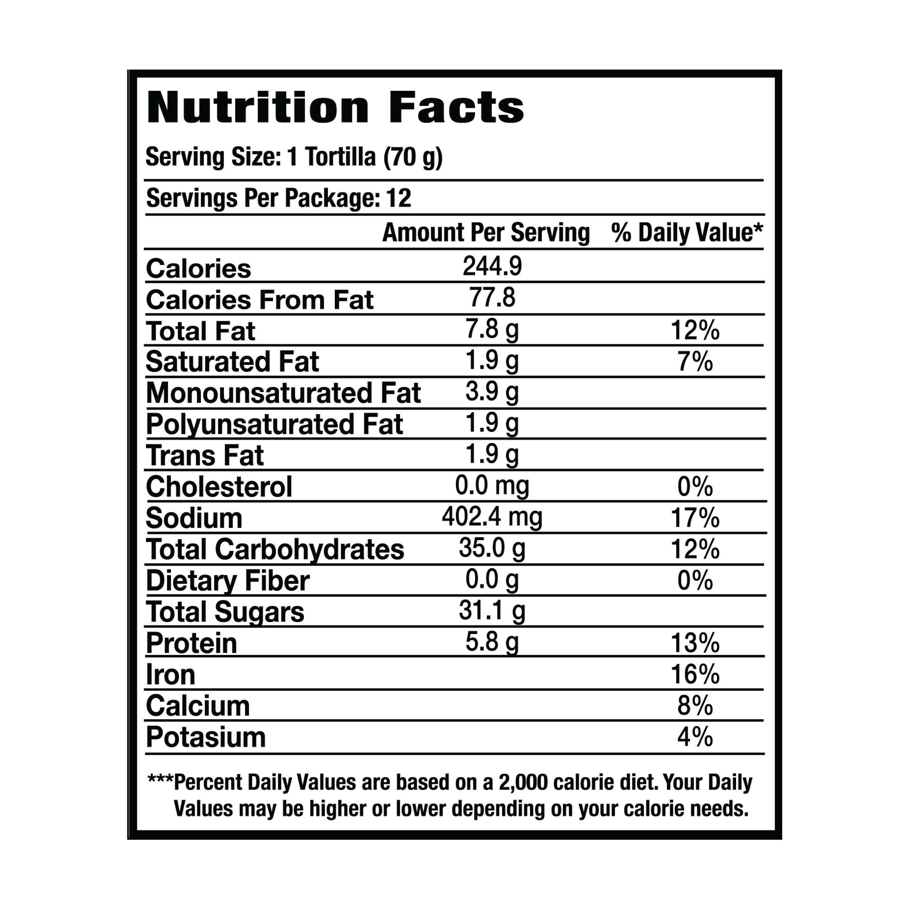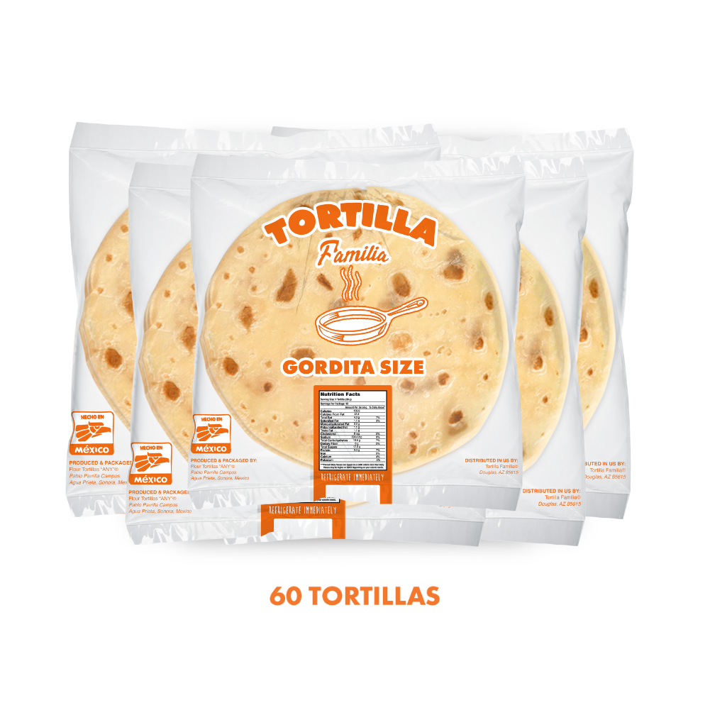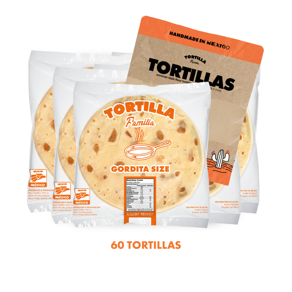 We only use 5 ingredients to preserve the natural Sonoran Style Tortilla Flavor and quality! Water, Salt, Flour, Vegetable Lard( made from soy and corn, NO PORK LARD used), and calcium propionate.