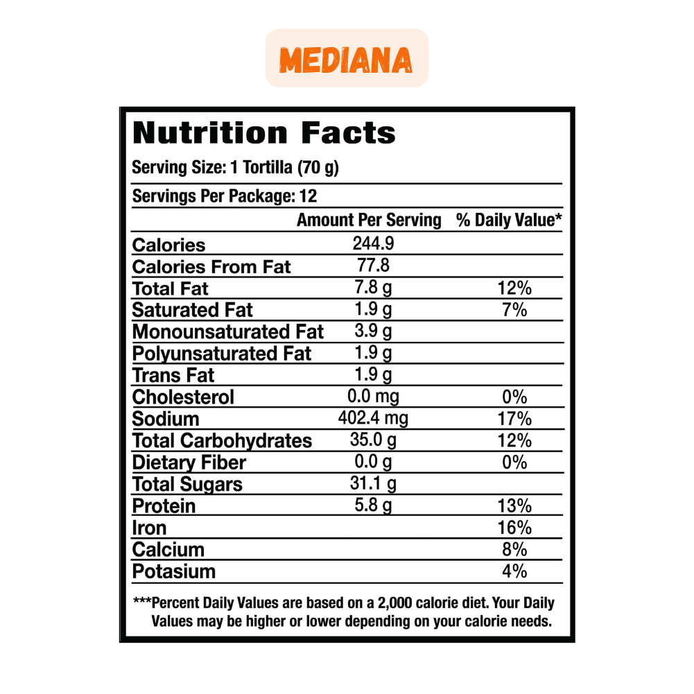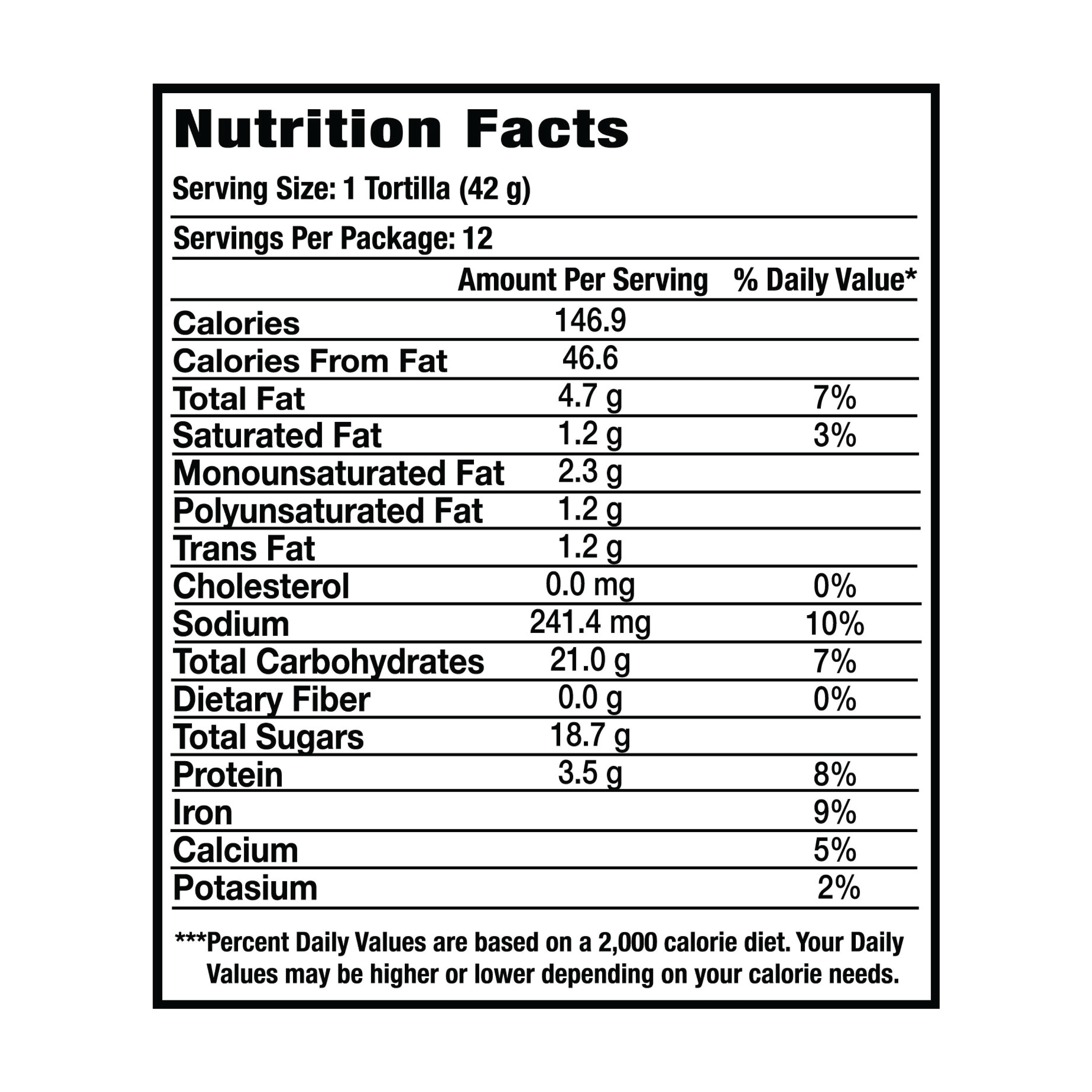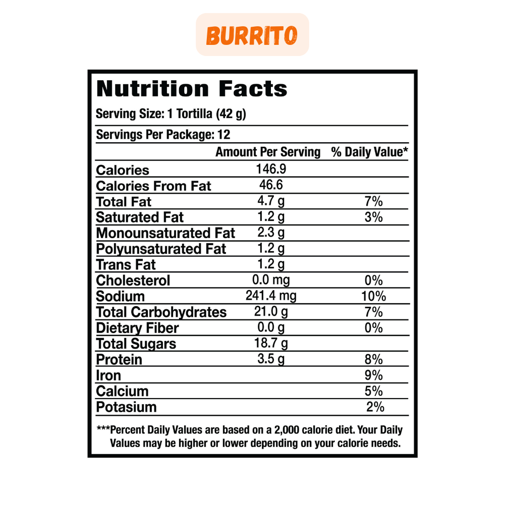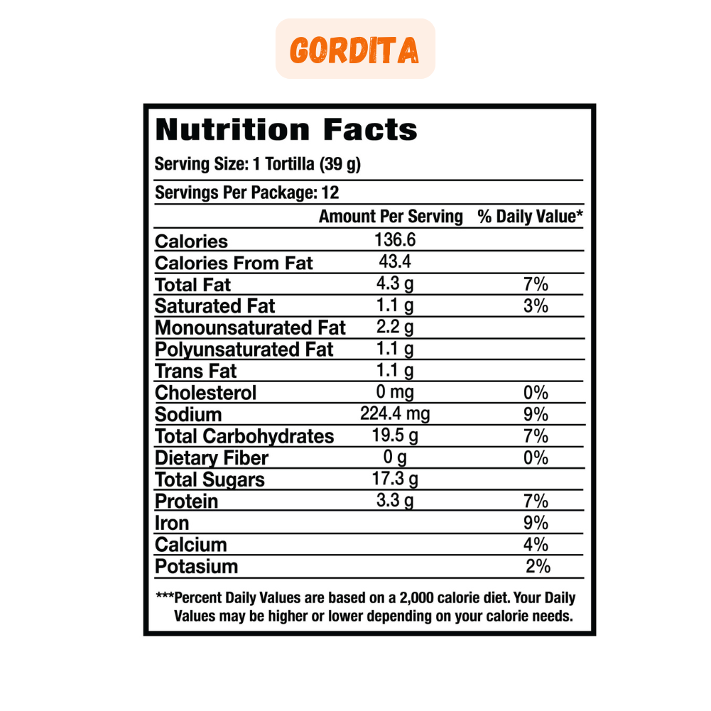 We only use 5 ingredients to preserve the natural Sonoran Style Tortilla Flavor and quality! Water, Salt, Flour, Vegetable Lard( made from soy and corn, NO PORK LARD used), and calcium propionate.