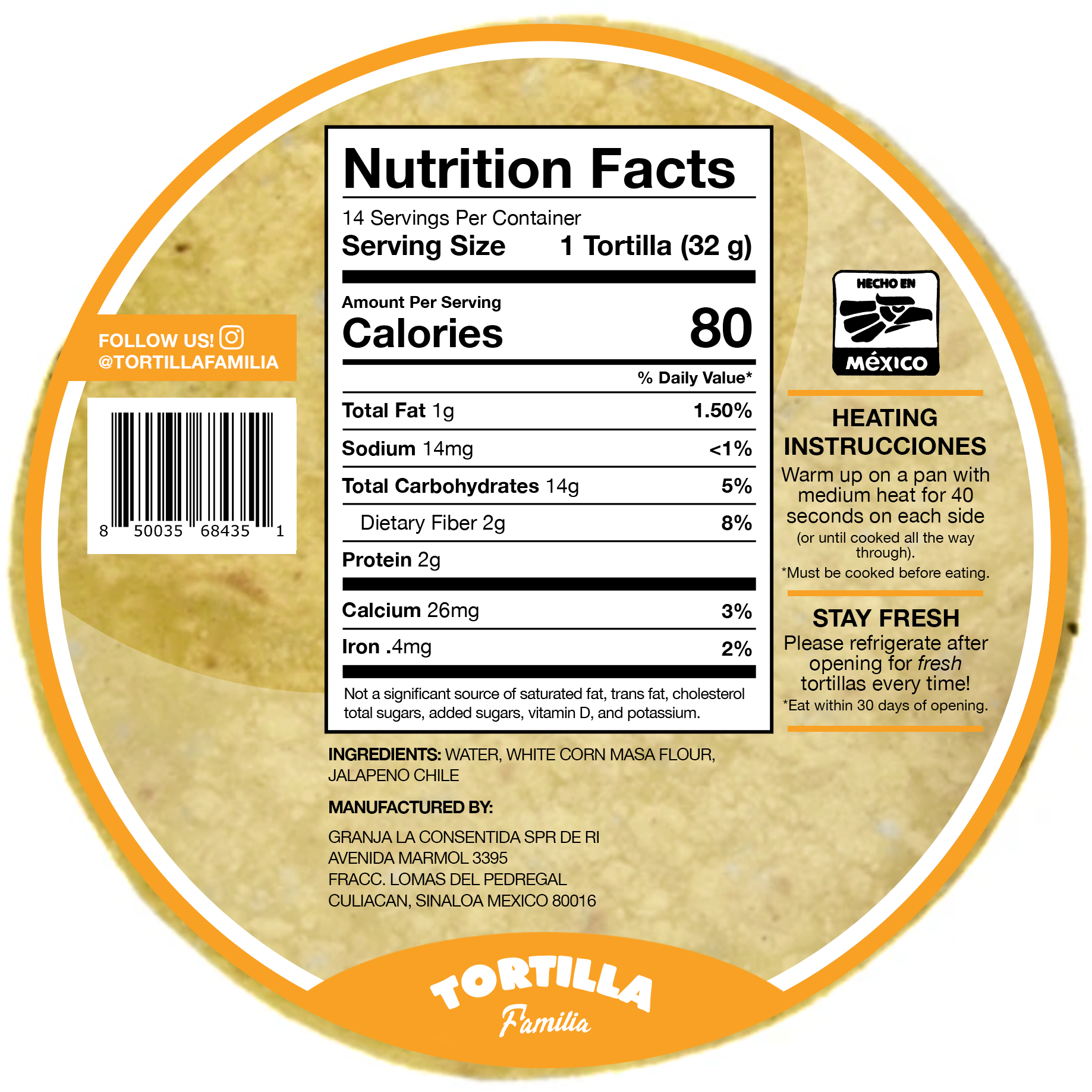 - (2) Packs of Jalapeño Corn Tortillas (14ct)
